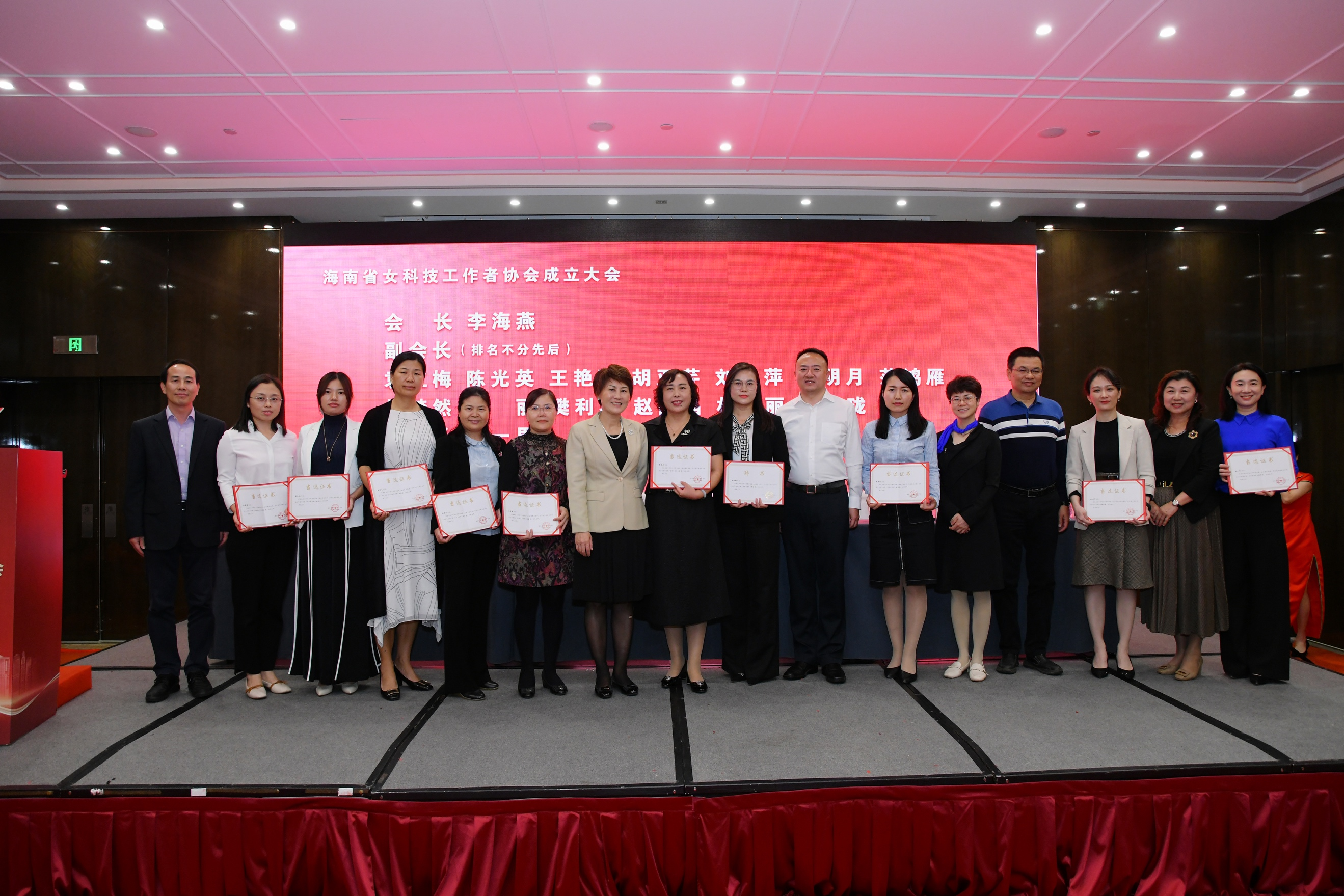 在大会上,还为海南省女科技工作者协会会长、副会长、秘书长、监事长颁发当选证书。